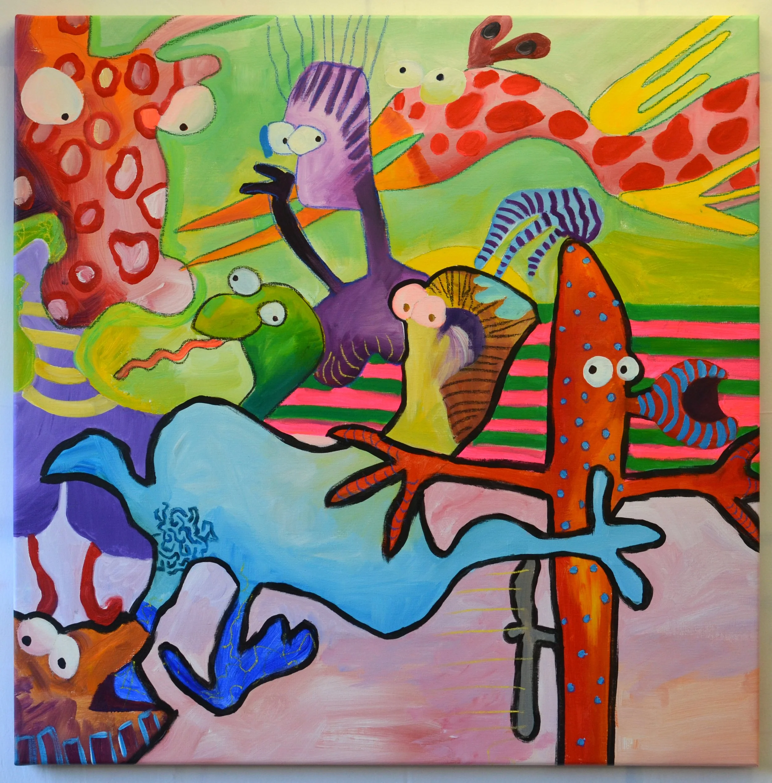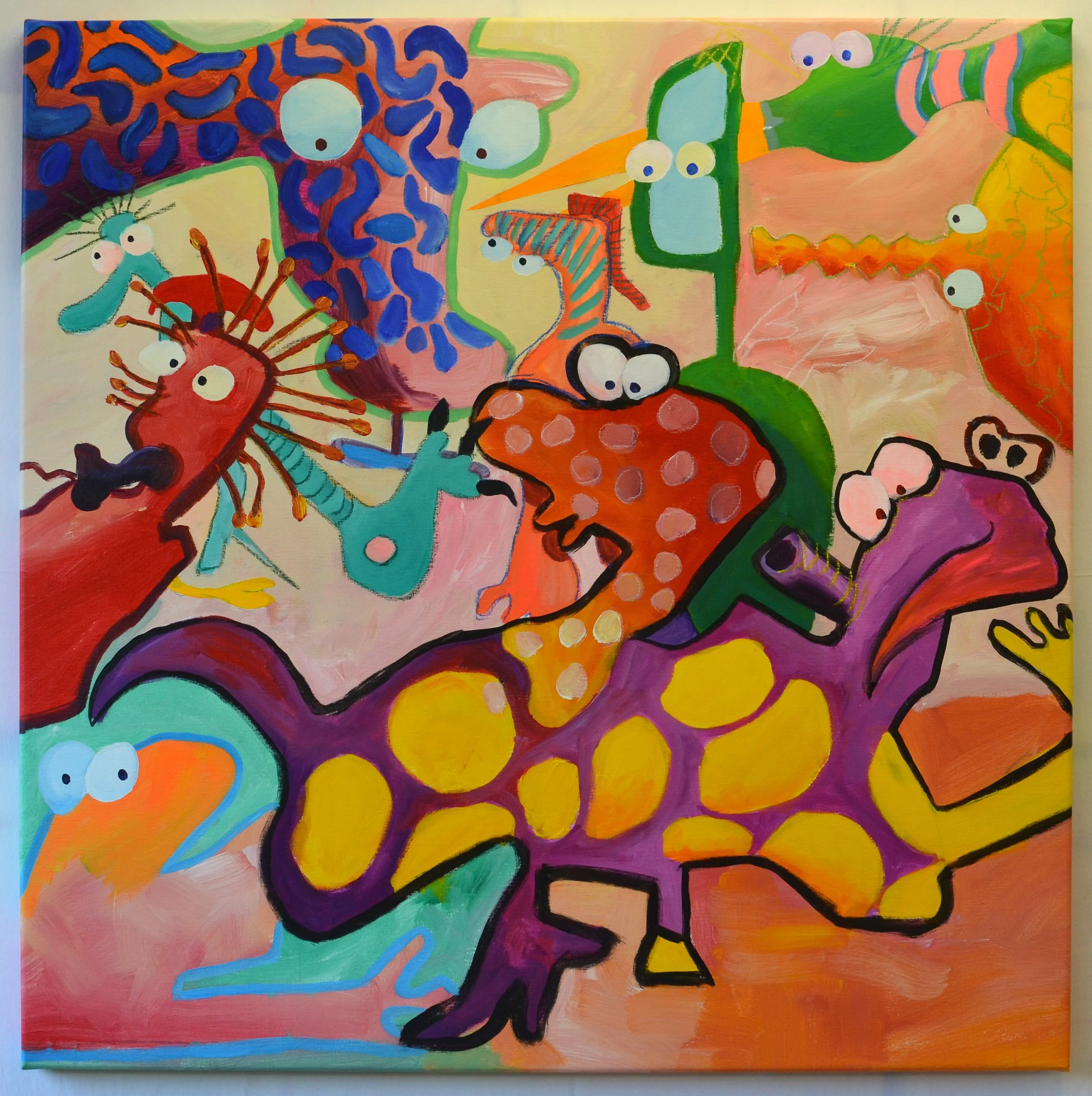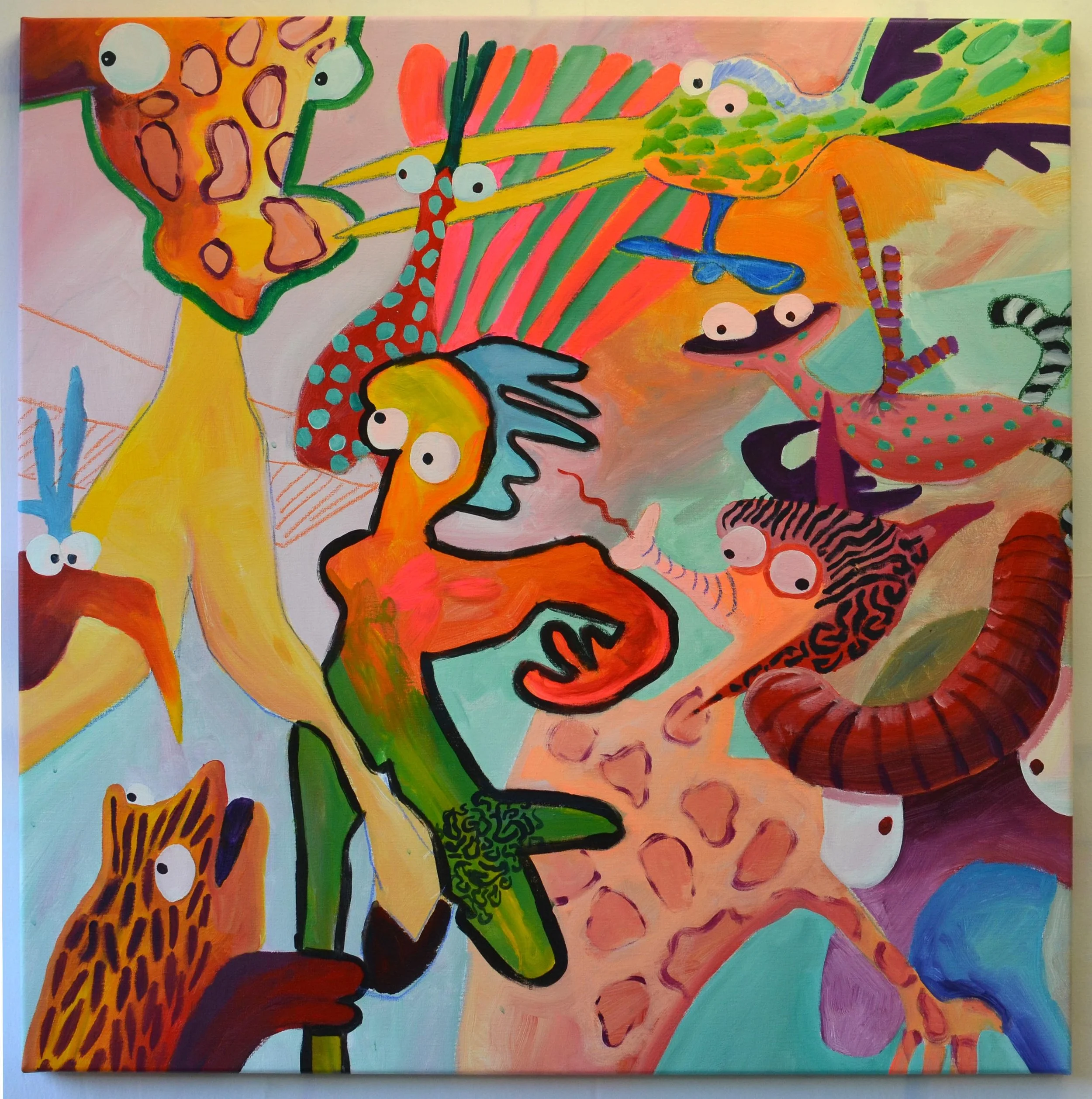 Margots fantasy: acryl en pastel op doek, 140 x 140 cm