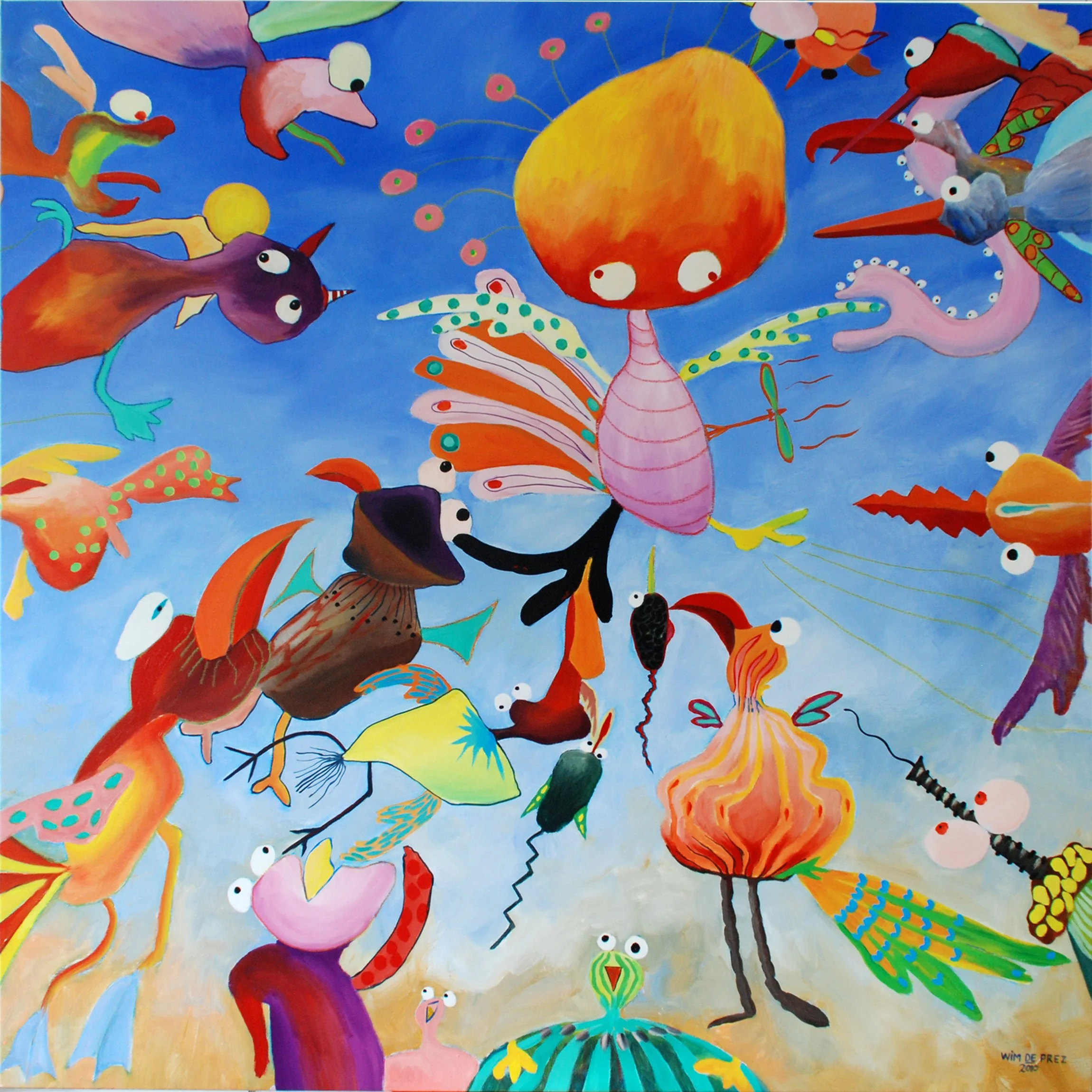 Wim De Prez gebruikt zijn unieke beeldtaal om creaturen, ontstaan in zijn fantasie, tot leven te brengen op het doek. Het zijn schilderijen over ‘uitgevonden’ creaturen, die de draak steken met het schoonheidsideaal.